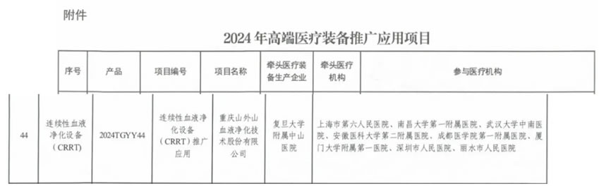 值得一提的是,本次大會在重慶市政府及中國醫(yī)學(xué)裝備協(xié)會的支持下,還特別舉辦了由國家工信部、國家衛(wèi)健委評選出的國家高端醫(yī)療裝備應(yīng)用推廣項目的啟動儀式。山外山牽頭復(fù)旦大學(xué)附屬中山醫(yī)院,及其他8家國內(nèi)知名醫(yī)療機(jī)構(gòu)專家攻關(guān)的連續(xù)性血液凈化設(shè)備(CRRT),在大會現(xiàn)場進(jìn)行了成果轉(zhuǎn)化落地。